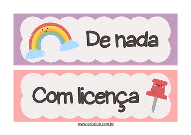 O jogo do "Guardião da Porta": Cole o cartão "Com licença" em uma porta real ou imaginária (pode ser feita com dois bambolês). Uma criança é o "guardião". Para que os outros possam passar, eles precisam pedir "Com licença". O guardião responde: "Pois não!". É uma forma divertida e corporal de praticar essa importante regra social.