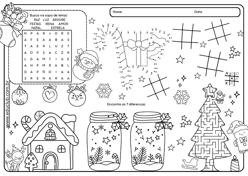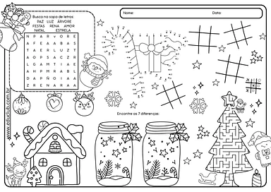 Explore a magia do Natal com os passatempos natalinos para imprimir, um material educativo encantador e diversificado, perfeito para engajar os pequenos durante as festividades. Este recurso oferece uma variedade de atividades lúdicas que estimulam o aprendizado de forma divertida e interativa.