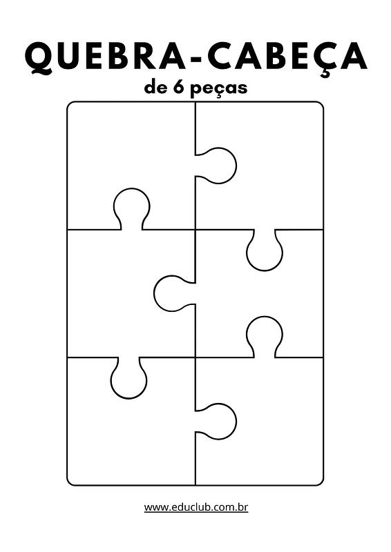 - Revisão de conteúdo (Alfabetização/Matemática): Para turmas em processo de alfabetização, pode-se escrever uma palavra ou sílaba em cada peça. Em matemática, pode-se colocar uma conta em uma peça e o resultado em outra. O quebra-cabeça só é "montado" quando as associações corretas são feitas.