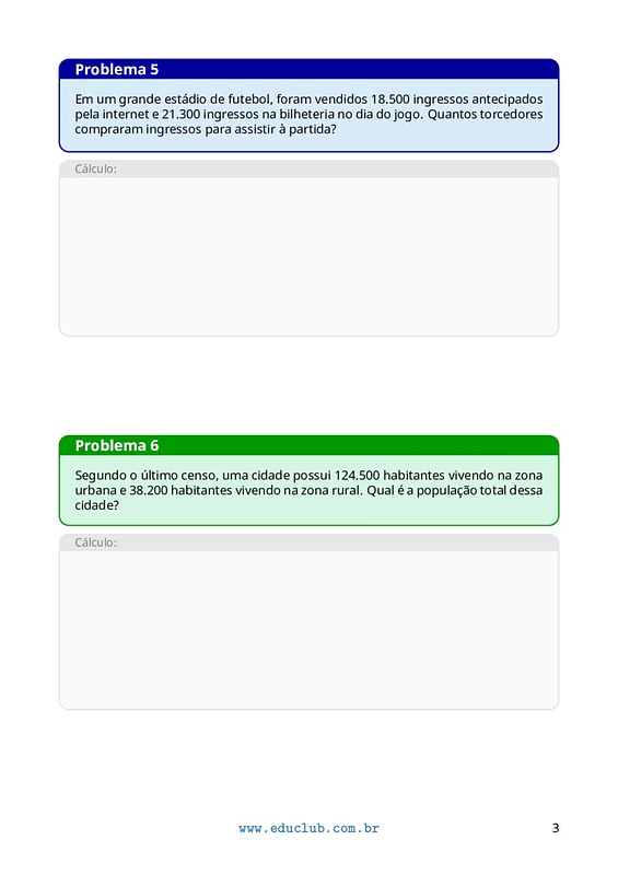 Problemas de adição para 5 Ano do Ensino Fundamental