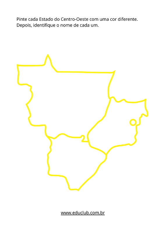 O Educlub.com.br preparou um material especial: um mapa da Região Centro-Oeste para colorir e aprender. Esta atividade foi desenhada para ajudar as crianças a memorizarem os estados, suas localizações e a reconhecerem a região dentro do mapa completo do nosso país.