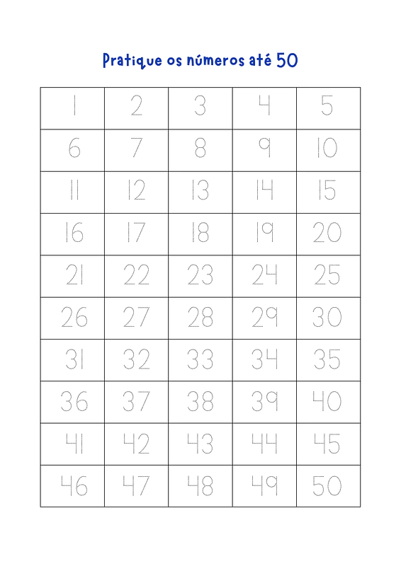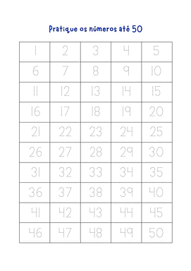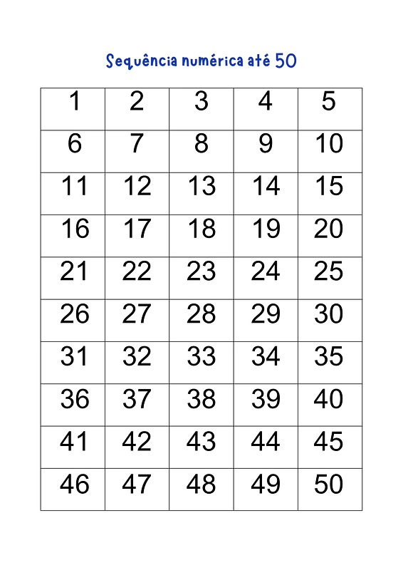 A construção do conhecimento numérico é um processo contínuo que exige prática e bons recursos visuais. Com esta atividade de sequência numérica até 50, as crianças ganham autonomia para explorar os números, praticar a escrita e fortalecer uma base que será usada por toda a vida escolar.