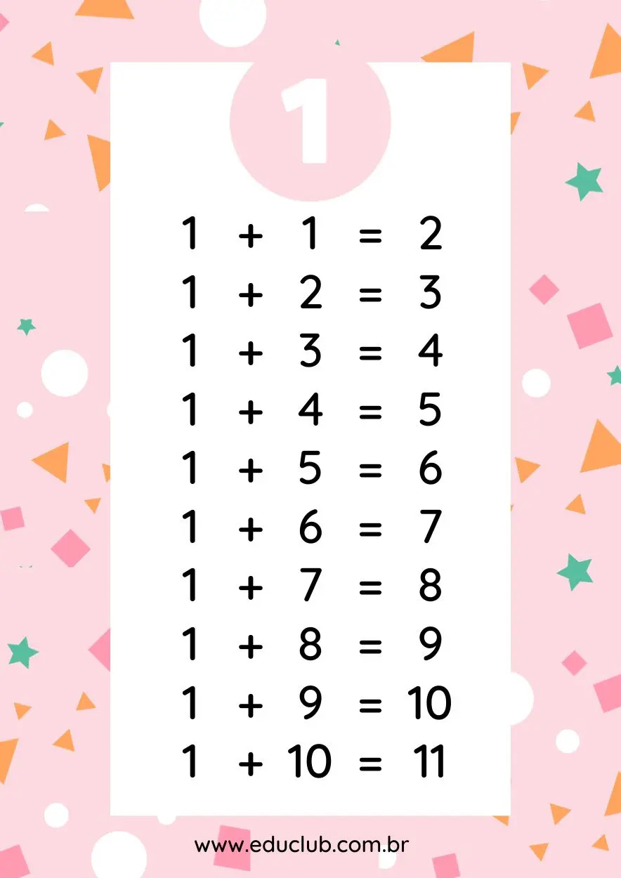 Tabuada de adição do 1