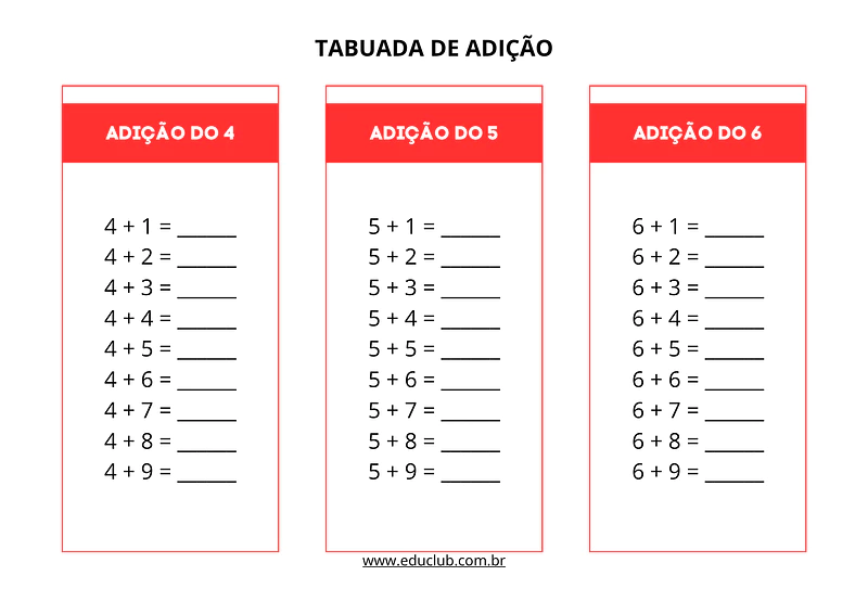 Para consolidar o aprendizado da adição de forma prática e autônoma, apresentamos a Tabuada de Adição para Completar. Este material é um recurso excelente para que as crianças exercitem o cálculo e memorizem os fatos fundamentais da adição. Ele serve como uma atividade de acompanhamento ao nosso post principal, que oferece a Tabuada de Adição Completa para Imprimir, funcionando como uma ferramenta de verificação.