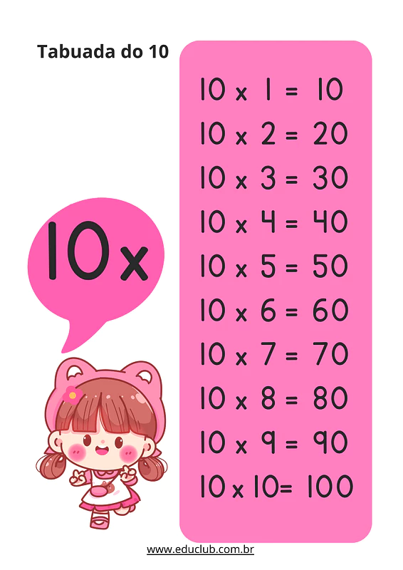 Pronto para dar essa confiança ao seu aluno? Baixe agora mesmo a tabuada do 10 para imprimir e veja a matemática se tornar mais simples!