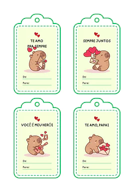 Todas as tags possuem os campos "De:" e "Para:", permitindo que a criança assine e dedique seu presente de forma pessoal.