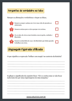 - Produção Autoral: Como extensão da atividade, desafie os alunos a escreverem seu próprio texto "De quem se trata?" sobre outro personagem do circo (como o palhaço ou o domador) para que um colega tente adivinhar.