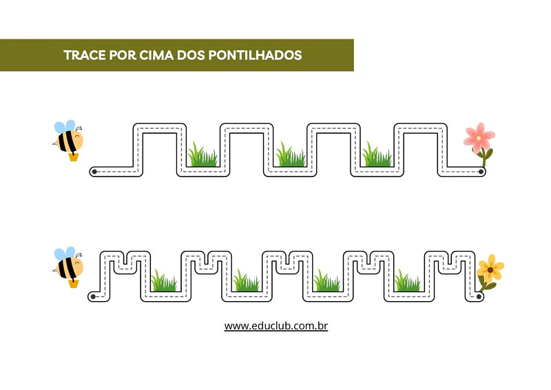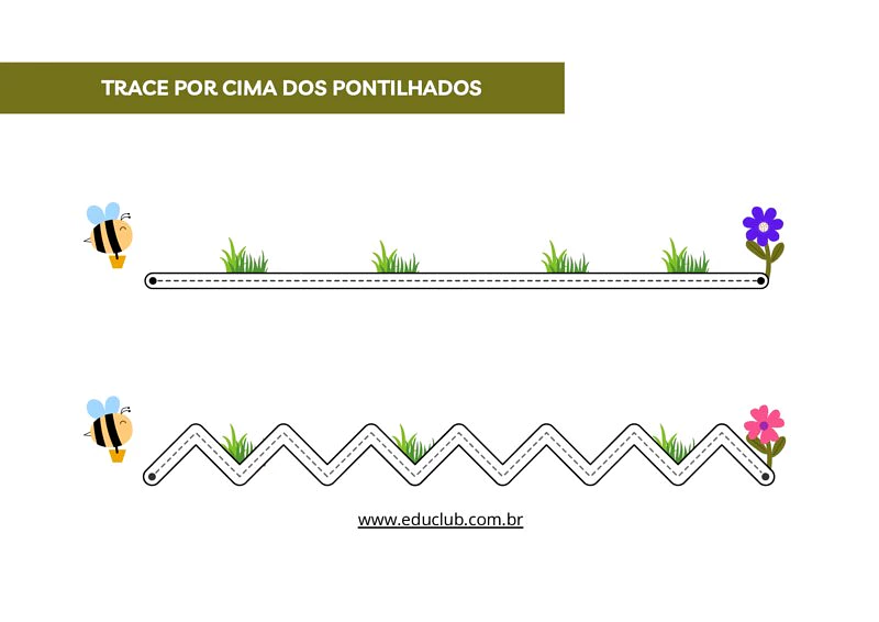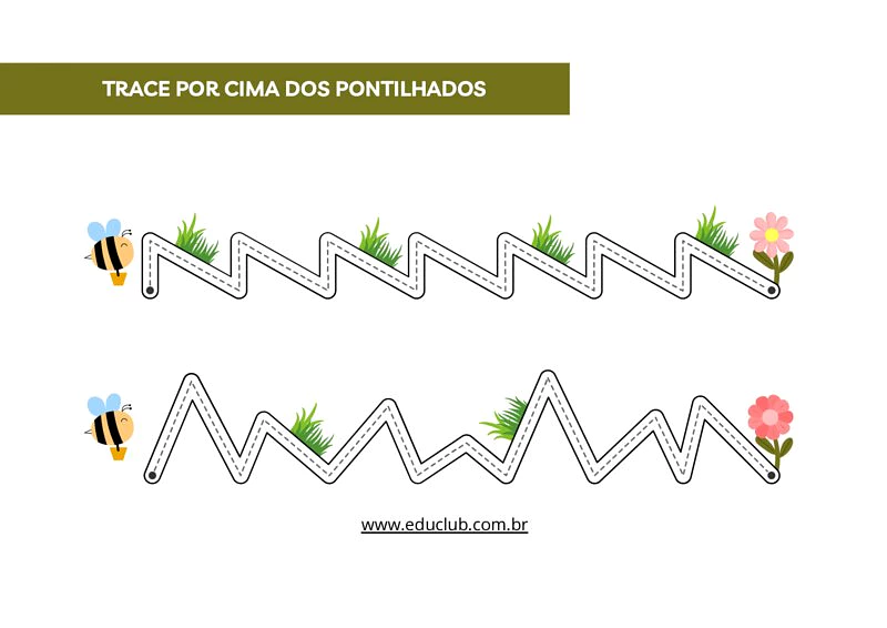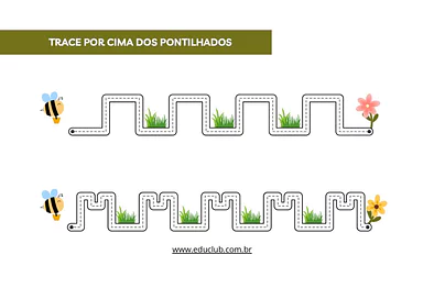 O Trace por cima dos pontilhados alinha-se à BNCC, especialmente no campo de experiências Traços, Sons, Cores e Formas (EI03TS02), ao desenvolver a coordenação motora e a expressão gráfica. Também contribui para o desenvolvimento da habilidade de traçar letras e números (EI03EF09), preparando a criança para a alfabetização.